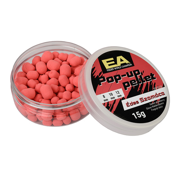 EA Pop Up Pellet Édes Szamóca ízesítésben. 1 dobozban 3 méret!!! A sikeres EA dual wafter csalizó pelleteket követően a horgászboltok polcaira kerülhetett egy újabb, a csalizási módszerek bővítését lehetővé tevő termékcsalád, az EA pop-up pelletek. Az ötféle színárnyalat és ízvilág nagymértékű alkalmazkodást tesz lehetővé az egyes halfajok és vízterületek igényeit figyelembe véve. A tégelyekben 8-10-12 mm-es pelletszemek keveréke található.