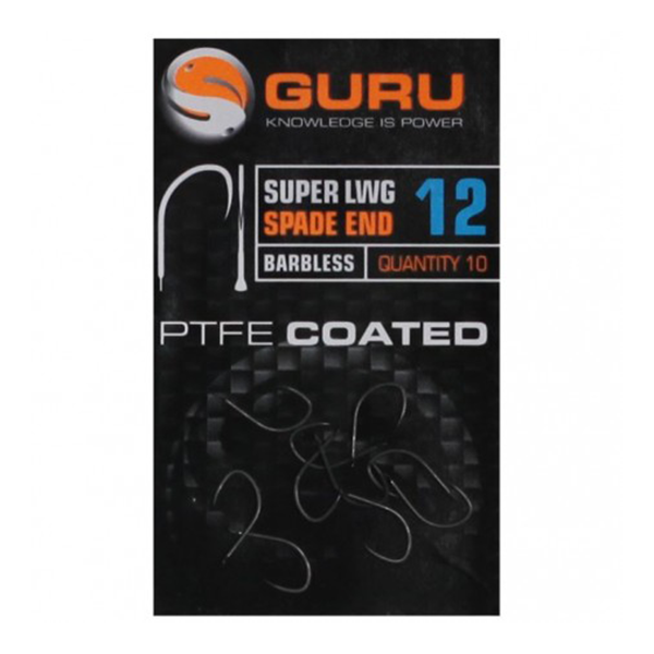 A Guru Super LWG szakáll nélküli lapkás horog, amelynek a nagyobb halak megfogása sem okoz gondot. Hosszú hegyű horog, így az akadás mélyre hatol a hal szájában, de mivel szakáll nélküli változat, így nem okoz fölösleges roncsolást vagy maradandó sebet. Hegye rendkívül éles, strapabíró és nehezen csorbul ki. Vékony húsú, könnyű horog, de ennek ellenére kifejezetten erős. PTFE bevonattal látták el, így a matt színének köszönhetően még a legóvatosabb pontyokban sem kelt gyanakvást.