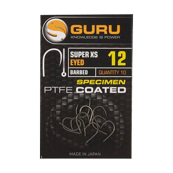 Guru Super XS füles, szakállas horog extrém szituációkra és nagyobb méretű halakra tervezve. Kifejezetten széles öblű horog, kialakításának köszönhetően még a nagyobb méretű halakat is jól tartja fárasztás közben. Hegye rendkívül éles, strapabíró és nehezen csorbul ki. PTFE bevonattal látták el, így a matt színének köszönhetően még a legóvatosabb pontyokban sem kelt gyanakvást.
