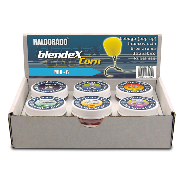 A BlendexCorn nem más, mint a népszerű BlendeX Pop Up csalik feltűnő színeivel és intenzív aromáival készült új gumikukorica (SpéciCorn) család, amely 6 különböző változatban kerül forgalomba. A kísérletező kedvű horgászok így már 7 különböző színű (citromsárga, narancssárga, fehér, piros, zöld, lila, fekete) csalik közül válogathatnak, amelyek között garantáltan ott van fogós csali MINDEN helyzetben! Méretük, állaguk, felhajtóerejük azonos a normál méretű SpéciCorn csalikkal, itt is minden tégely 10 db finom aromában ázó gumi kukoricaszemet tartalmaz, melyek ízenként eltérően két-két különböző színben vannak jelen. Ebben a családban minden különleges és fogós színváltozat megtalálható. Ezek közül talán a lila, kék és a fekete a legkülönlegesebbek, legszokatlanabbak. Ezek a csalik egy világos kajakupac közepén szinte „világítanak”. Nagyon hatásosak akkor is, amikor egy tiszta áttetsző vízben, a hagyományos sárga, narancs, piros színek már gyanúsak a halaknak. No, akkor különösen érdemes ezeket a szokatlan színű csalikat bevetni!