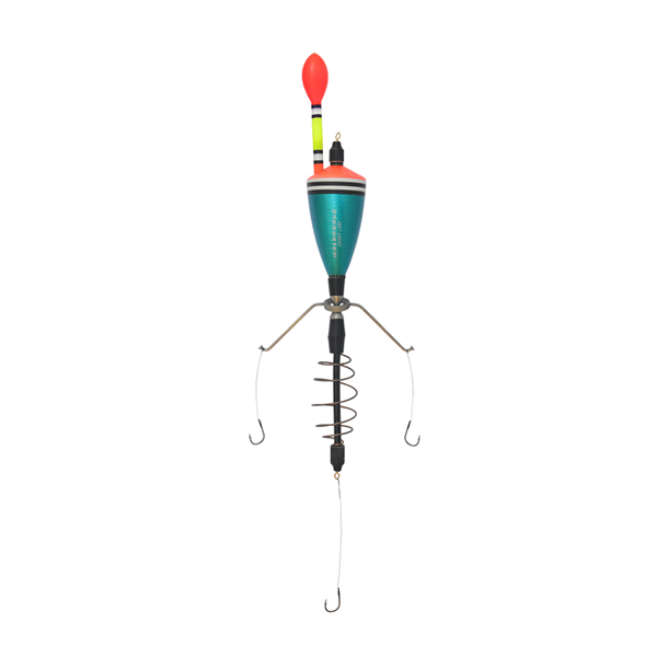 - Az úszó használatbavétele nagyon egyszerű, mindössze a tetején lévő forgóba kell belekötni a főzsinórt, felcsalizni a horgokat, megtölteni a spirálkosarat, és már dobható is!