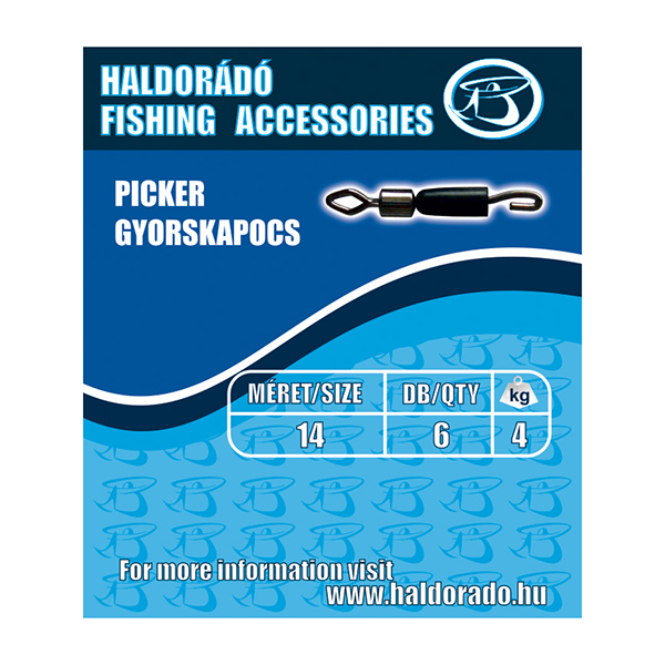 Talán a ma kereskedelmi forgalomban kapható legkisebb gyorskapocs. Különlegessége, hogy nincs szükség külön gumikúpra, hanem az a forgókapocsba van építve. Mint a neve is utal rá, gyors előkecserét biztosít a finomszerelékes feeder horgászoknak. Nincs más teendő, mint az előkét beleakasztani a gyorskapocs kampójába és a felső gumiharangot a kampóra húzni. A legfinomabb feeder -, illetve picker végszerelékek kialakításához ideális választás. Három méretben kapható. Terhelhetőségük: L – 9 kg, M – 7 kg, S – 5 kg. Mindhárom méretnél 6 db gyorskapocs található 1 csomagban.
