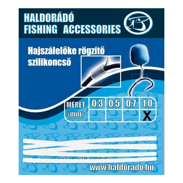 A Haldorádó Hajszálelőke rögzítő szilikoncső hasznos és praktikus kiegészítője lehet bármely végszereléknek! Ez a csövecske arra hivatott, hogy a horgunk szárára fűzve stabilan rögzítse a hajszálelőkét, ezáltal segítse a csali ideális módon történő felkínálását. Ez az apróság nagyságrendekkel növelheti a horog akadásának arányait! Használata rendkívül egyszerű, mindössze a horgunk méretéhez optimális átmérőjű csőből le kell vágni egy pár mm hosszú darabkát, majd ezen a horogelőke kötése során át kell bújtatni a zsinórt, illetve a horgot. Egységesen víztiszta színben, valamint négy különböző méretben: 0,3; 0,5; 0,7 és 1,0 mm-es átmérővel kerül forgalomba.