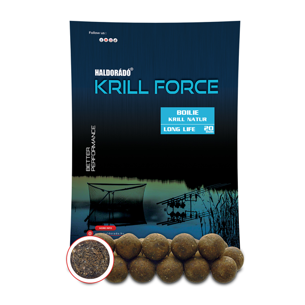 A Krill Force egy teljesen új termékcsalád, melyhez fogható nincs a Haldorádó palettán. Minden e családban lévő termék alapja a legmagasabb minőségű krill és hallisztek mesteri keveréke. Ilyen magas beltartalmi értékekkel rendelkező, ennyire összetett, de ugyanakkor naturális jellegű csali, még nem volt a kínálatunkban. A termékcsalád három tagot számlál, melyek ízesítésben minimálisan eltérnek egymástól. A Krill Natur teljesen natúr, ízesítetlen változat. A Hot Spicy csípős fűszerkeverékkel ízesített, míg az Indian Spice egy különleges indiai, enyhén csípős fűszerkeverékkel készül.