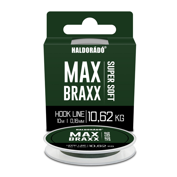 A Haldorádó MAX Braxx – Super Soft Hook Line egy professzionális süllyedő fonott feeder előkezsinór, melynek fontos jellemzője a méretpontosság és a magas szakítószilárdság! Hihetetlenül vékony, de mégis megdöbbentően erős. Színe beleolvad a környezetébe, a halak számára szinte „láthatatlan”. A MAX Braxx – Super Soft Hook Line 9 méretben (0,04-0,20 mm), 10 méteres kiszerelésekben kapható.
