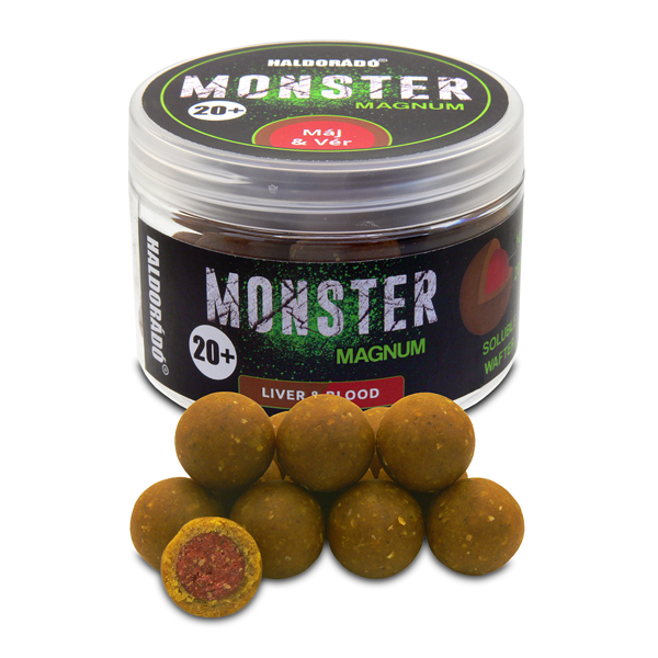 A Haldorádó Monster Magnum az oldódó és a főzött csalik összes előnyével rendelkezik, ugyanis olyan csaliról van szó, amelynek közepe főzött, külső rétege viszont oldódó! Belső magja 14 mm átmérőjű, parafaőrleménnyel balanszírozott, főtt, nem oldódó csali. A külső réteg 3 mm vastag és folyamatosan oldódva ontja magából a csábító ízanyagokat. Használatával elkerülhetjük csalink leázását, ugyanis a belső, főzött rész, akár 72 órát is kibír, miközben a külső rész oldódási ideje 2-3 óra (vízhőfoktól függően).