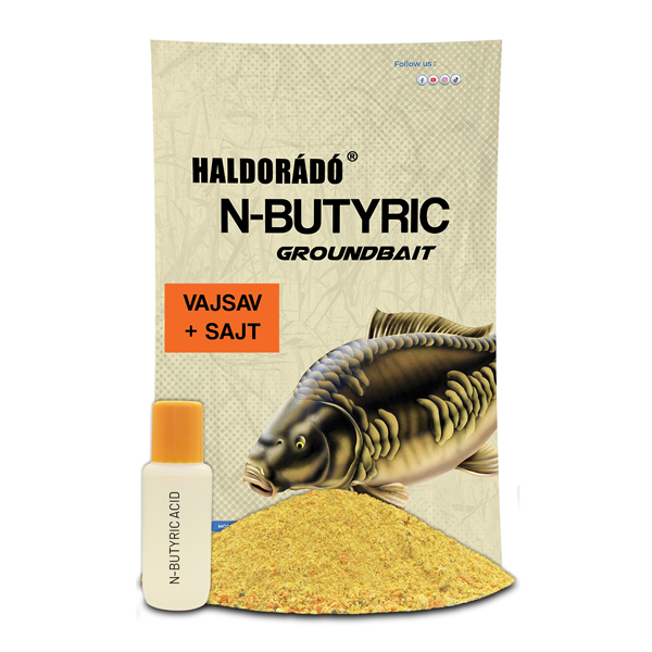 A Haldorádó N-Butyric Groundbait különböző módon feltárt kukoricaszármazékokból áll. Nagyon magas szénhidráttartalom, vegyes szemcseméret, gyors oldódás és gazdag aromavilág jellemzi ezeket az etetőanyagokat. Ahogy a csalik, úgy elsősorban ezek is a már stabil, meleg vízben fejtik ki legjobban a hatásukat, legyen szó ponty- vagy épp célzott amurhorgászatról. Felhasználásukat tekintve akár bordás, akár method kosárban is bevethetők. Minden tasakban 800 g száraz etetőanyag és 50 ml tömény vajsav található, amelyet az etetőanyag nedvesítésére használt kb. 300 ml vízbe (amely lehetőleg a tó vize legyen) kell beleönteni, elkeverni, majd ezzel az etetőanyagot bekeverni. Így kapjuk azt a brutál intenzív hatást, amelyre nagyon gyorsan reagálnak a halak! Ötféle változatban kerül forgalomba, ezek a sárgásfehér, natúr Vajsav Natural, a narancssárga Vajsav + Sajt, a citromsárga Vajsav + Méz, a halványlila Vajsav + Szilva és a zöldszínű Vajsav + Fokhagyma. Minden tasakban 800 g száraz etetőanyag és 50 ml tömény vajsav található, amelyet az etetőanyag bekeveréséhez használt kb. 300 ml vízbe (amely lehetőleg a tó vize legyen) kell beleönteni, elkeverni, majd ezzel az etetőanyagot bekeverni. Így kapjuk azt a brutál intenzív hatást, amelyre nagyon gyorsan reagálnak a halak! Négyféle változatban kerül forgalomba, ezek a sárgásfehér natúr Vajsav Natural, a narancssárga Vajsav + Sajt, a citromsárga Vajsav + Méz, valamint a halványlila Vajsav + Szilva.