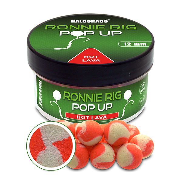 Haldorádó Ronnie Rig Pop Up Hot Lava. 2025-től új nagypontyos csalival bővül a palettánk, amely kifejezetten a híres Ronnie Rig-es felkínáláshoz lett optimalizálva. A Ronnie Rig Pop Up golyók dupla színezetűek, látványosak és nagyon ízesek, a megszokottól jóval aromásabbak, továbbá óriási felhajtóerővel rendelkeznek. Ez utóbbi teszi igazán alkalmassá őket a nevükben is szereplő csalifelkínáláshoz!