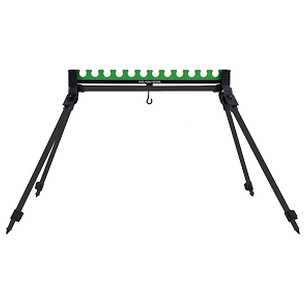 Maver Medium MV-R Kit Front Rest. 12 hellyel rendelkező 4 lábú topset tartó, amely kiváló a rakósbotok topsetjeinek, illetve a felszerelt, és bevetésre kész feederbotok tárolására is. Állítható lábainak köszönhetően bármilyen talajon nagyon könnyen pozícionálható, ezzel széleskörű felhasználatóságot biztosítva a horgászoknak.