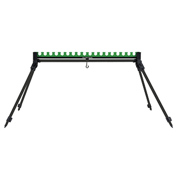 Maver Medium MV-R Kit Front Rest. 18 hellyel rendelkező 4 lábú topset tartó, amely kiváló a rakósbotok topsetjeinek, illetve a felszerelt, és bevetésre kész feederbotok tárolására is. Állítható lábainak köszönhetően bármilyen talajon nagyon könnyen pozícionálható, ezzel széleskörű felhasználatóságot biztosítva a horgászoknak.