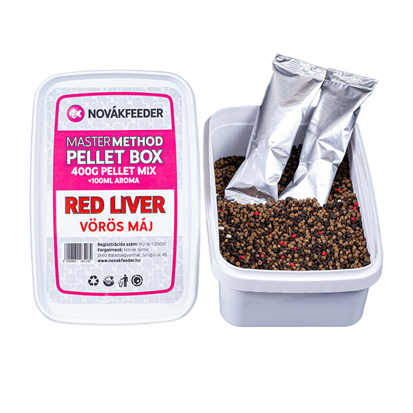A Novák Feeder Master Method Boxban halas, tehát fehérjedús és szénhidrátban gazdag pelletek speciális keveréke található, a 400g pellet keverék horgászathoz való előkészítéséhez szükséges 100ml aroma mennyiséggel. Az aroma tasakot kibontva, annak tartalmát rá kell önteni a pelletre, majd jól összerázni és 10-15 percet állni hagyni. A keverék ezután használható, kosárba tölthető.