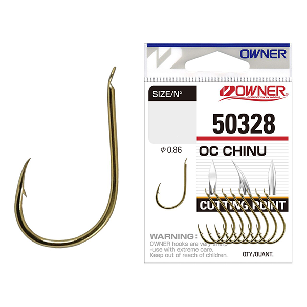 Owner Cut Chinu 50328 egy arany színű, vékony húsú de mégis erős horog. Hegykiképzése extra hegyes, úgynevezett lándzsa formát kapott, így az akadás szinte garantált. Klasszikus, nagyöblű, pontyozó forma.