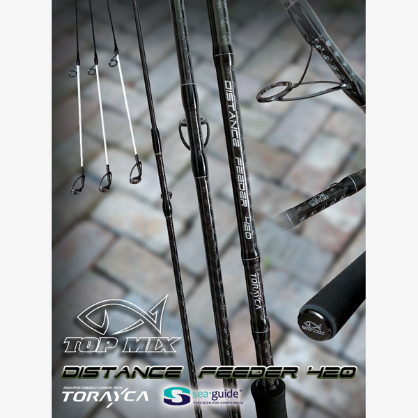 A Top Mix Distance Feeder 420 kifejezetten nagy távolságok meghorgászásához fejlesztett feeder bot 390 és 420 hosszban. A magas minőségű alapanyagok felhasználásával készült TORAY carbon blank, a hozzá leginkább illő SEAGUIDE gyűrűsor, és a távdobáshoz optimalizált nyélhossz garantálja, hogy ezzel a feeder bottal nincs elérhetetlen távolság. Avatott kezek alatt a 150-170m is elérhető a 420 változattal, míg a 390 hosszú változattal 120-140 méter dobható. Aki a távdobó feeder OB felé is kacsintgat, mindenképp érdemes számításba vennie ezt a feeder botot! Ajánljuk továbbá azoknak, akik hobby vagy versenykörülmények között szeretnek nagy távolságra, 100 méter fölé horgászni. Hosszú teszt időszak előzte meg a bolti megjelenést, hisz ezeknek a botoknak a teszt példányai már a 2021 évi Method klubcsapat bajnokságon is szerepeltek a Maconkai víztározón, ahol a Top Mix csapat bajnoki címet szerzett a használatukkal. Végleges formájukat szintén ugyanezen bajnokságon és helyszínen, 2022 évben érték el, ahol a csapat tagjai ismét dobogóra állhattak. A Distance feeder botok feszesek, erősek, mégis karcsúbbak hasonló társaiknál