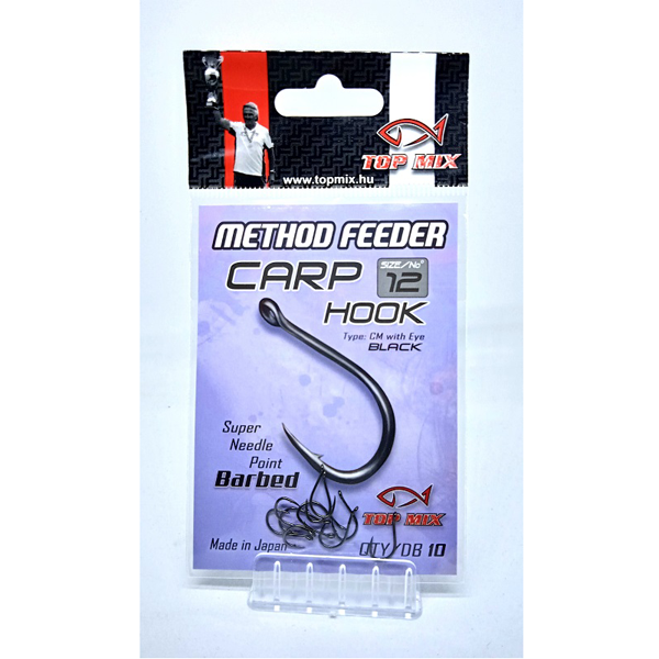 Kifejezetten method horgászathoz kifejlesztett mikroszakállas, pontyos horog. Tökéletes választás csalitüskés, szilikonkarikás vagy hajszál előkés módszerekhez.