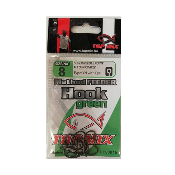 Japánban gyártott, a method feederes pontyhorgászathoz kifejlesztett horgok. Nagy öblű, megfelelően erős szárú, enyhén kihajtott, kiváló éltartó tulajdonságú, kémiai élezésű, teflon bevonatú mikro szakállas, füles horog. Elsősorban csalitüskés, vagy fűzött csalikhoz ajánljuk, legyen az pellet, wafters, bojli, vagy akár magvak. Három méretben és három színű bevonattal kerülnek forgalomba.
